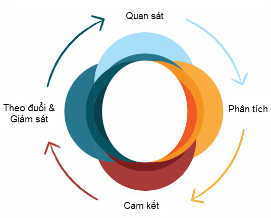 - Cam kết. Ở giai đoạn này chúng ta tiến hành chọn ra “Giá trị Nổi-bật-thu-hút (Spotlight Value)” của bản thân – cái giá trị quan trọng nhất đối với chúng ta ở thời điểm hiện tại và điều đó sẽ là phương tiện nâng cao cảm giác ý nghĩa, lòng tự tôn, và hạnh phúc. Ở đây chúng ta thực hiện việc xác định và lên kế hoạch một cách cẩn thận cho hành trình phía trước, để có thể đạt được những giá trị của bản thân, giữ vững sự tập trung và động lực, vượt qua chướng ngại và thúc ép, nếu cần, để băng qua “thung lũng tuyệt vọng”. Đây là giai đoạn chúng ta trả lời câu hỏi: Tôi muốn gì vào lúc này? Và Làm thế nào để tôi đạt thành?